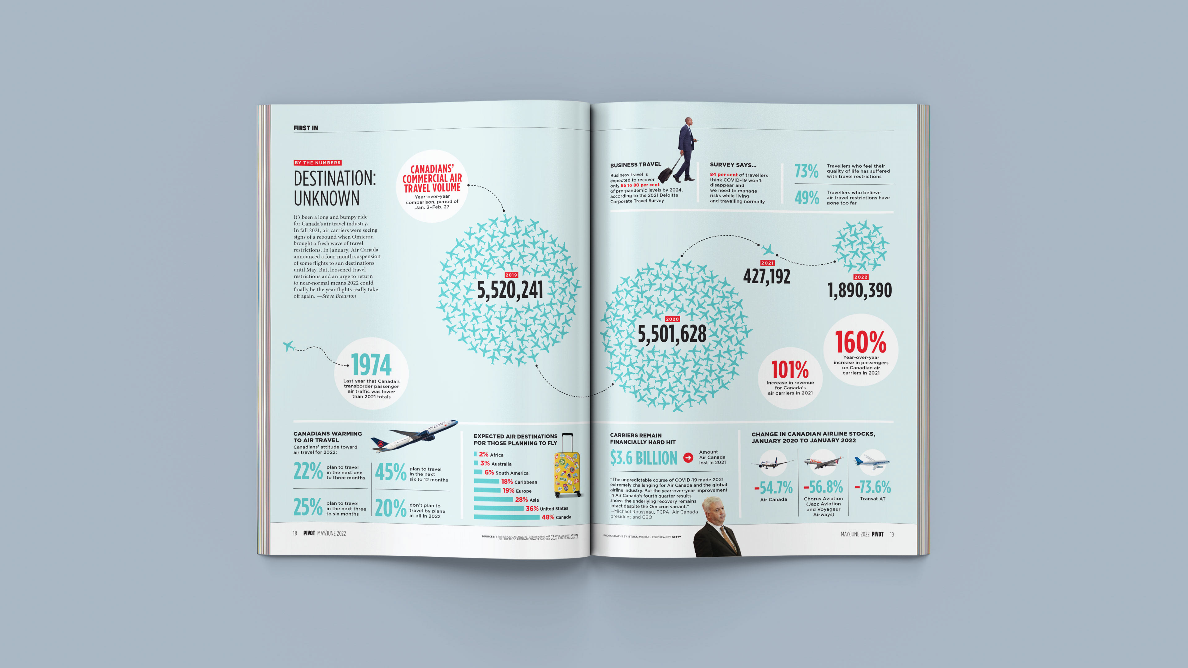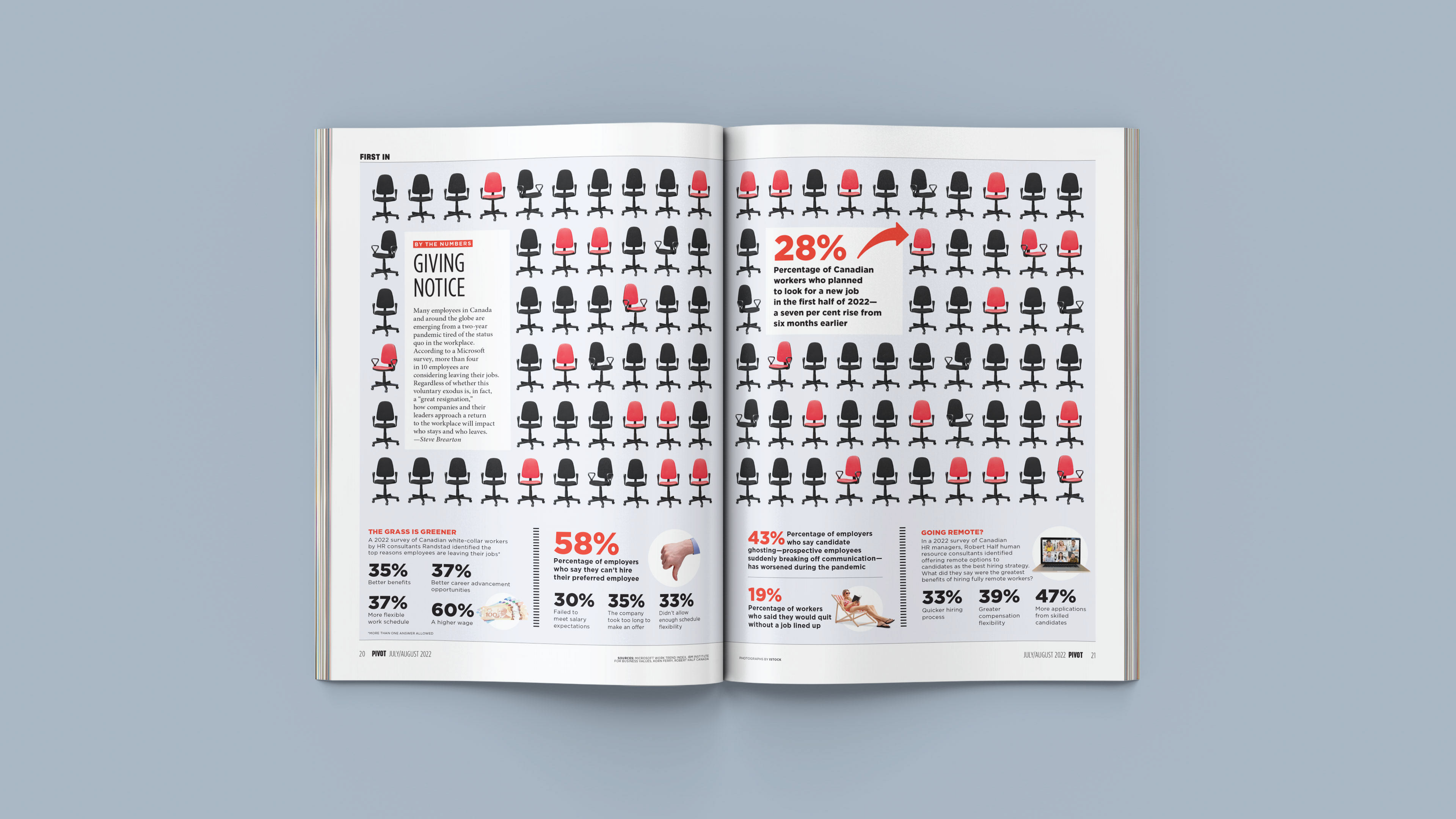 Infographic designs from the award-winning Pivot magazine, a business publication that I designed and art direct for CPA Canada in collaboration with St. Joseph Communications